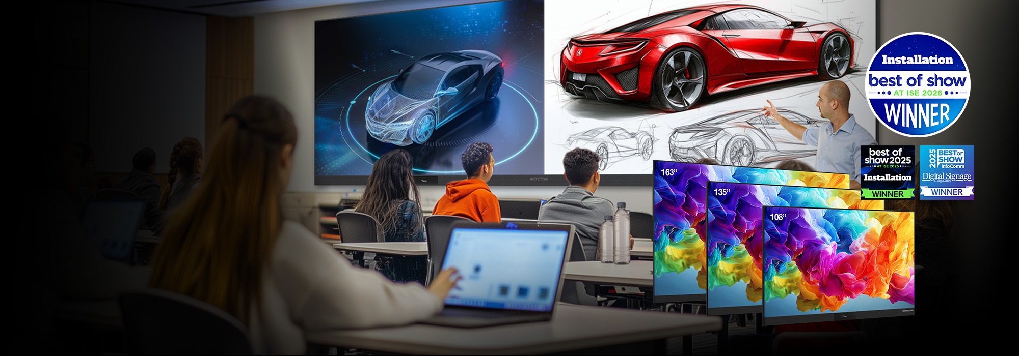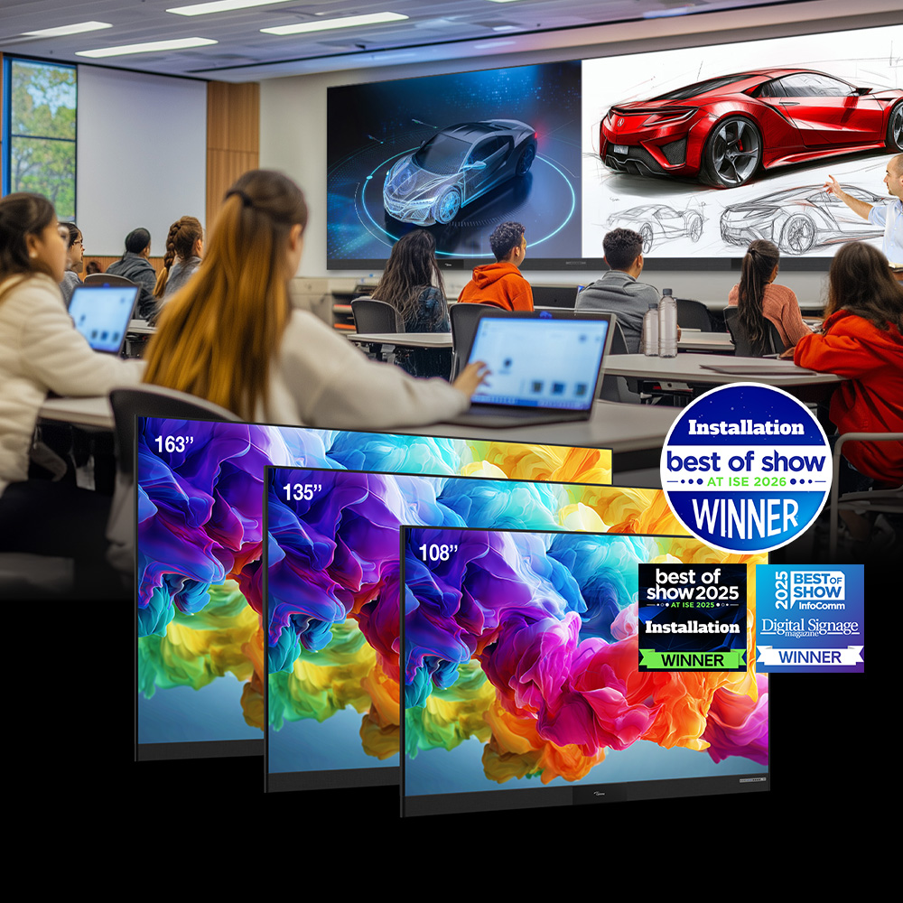 All-In-One direct view LED displays, which feature built-in Android, video processing and a 120-watt sound system, deliver stunning content clarity and contrast for corporate, education and retail applications.