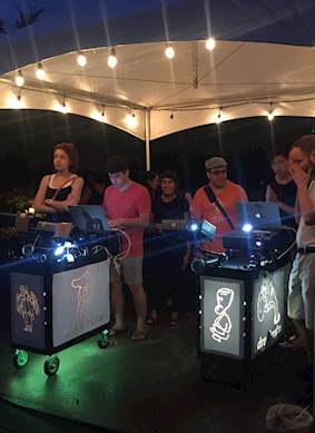 This project celebrated the publication of Momeni’s Manual for Urban Projection, a Kickstarter funded project and was among the approximately 20 different Kickstarter funded projects that participated in this festival. Momeni is a professor in the School of Art at Carnegie Mellon University and directs Carnegie Mellon University ArtFab – a cross-disciplinary facility dedicated to research in the intersection of digital and physical media and its techniques. He has been active in the audio and projection world for 10 years and has a passion for creating participatory experiences in public spaces engaging in art, design and storytelling.