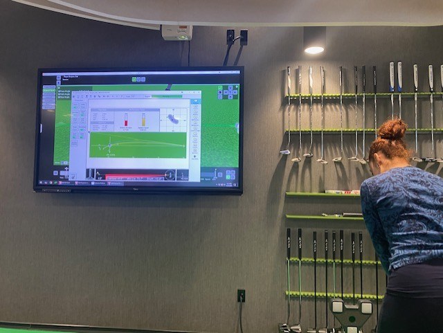 Finally, they put in an Optoma 86-inch Creative Touch 5-Series Interactive Display to aid in the visualization of golf data and analysis by the putting green.
