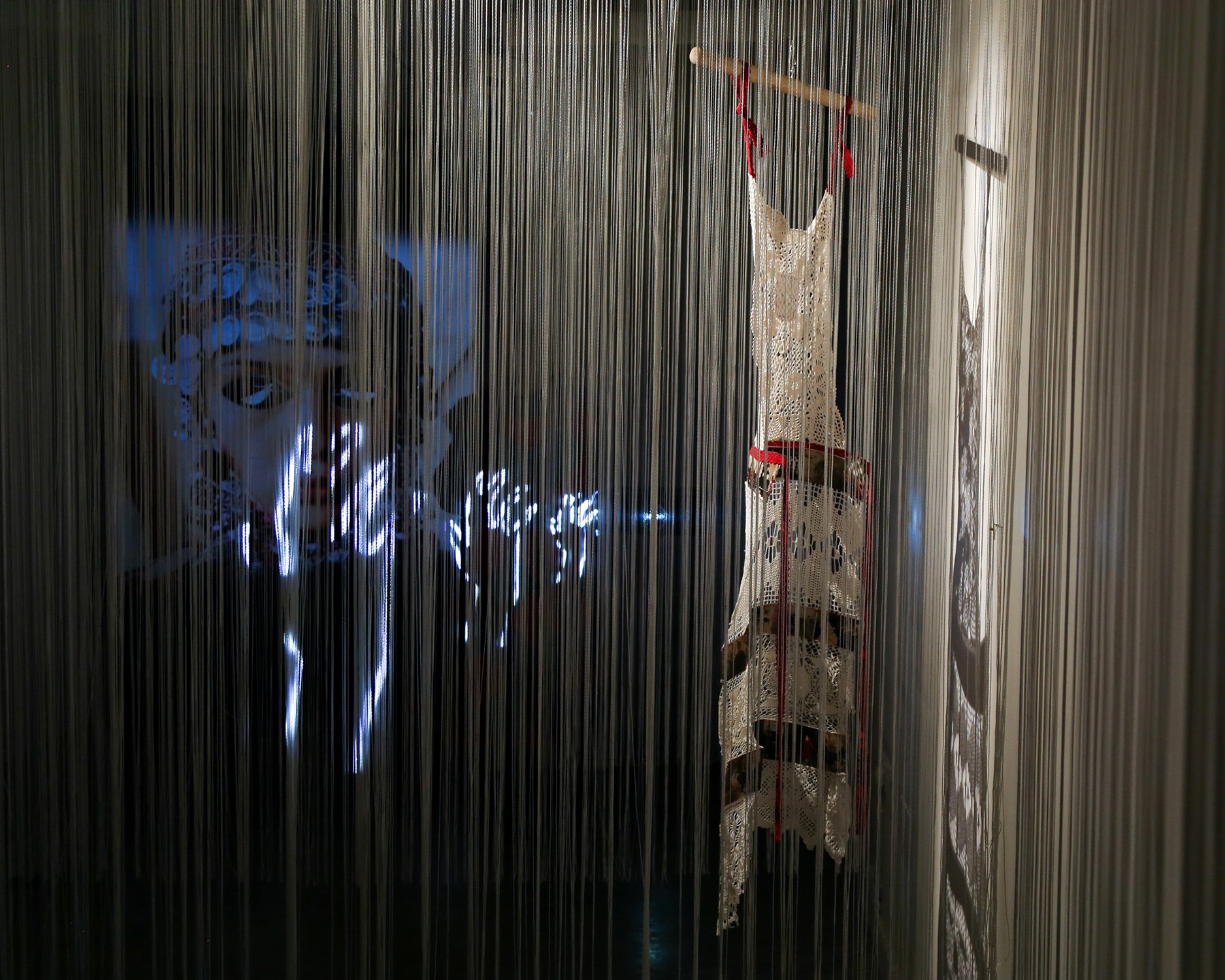 Two of Optoma’s projectors were chosen. The ZU720TST, for a rear-projection on to multiple layers of threads, and ZH406ST, which was used to project on to the main artwork.