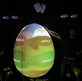 Projector alignment was a challenge as the egg model has no defining corners, but a seamless output was facilitated by high resolution 3D scanning technology.