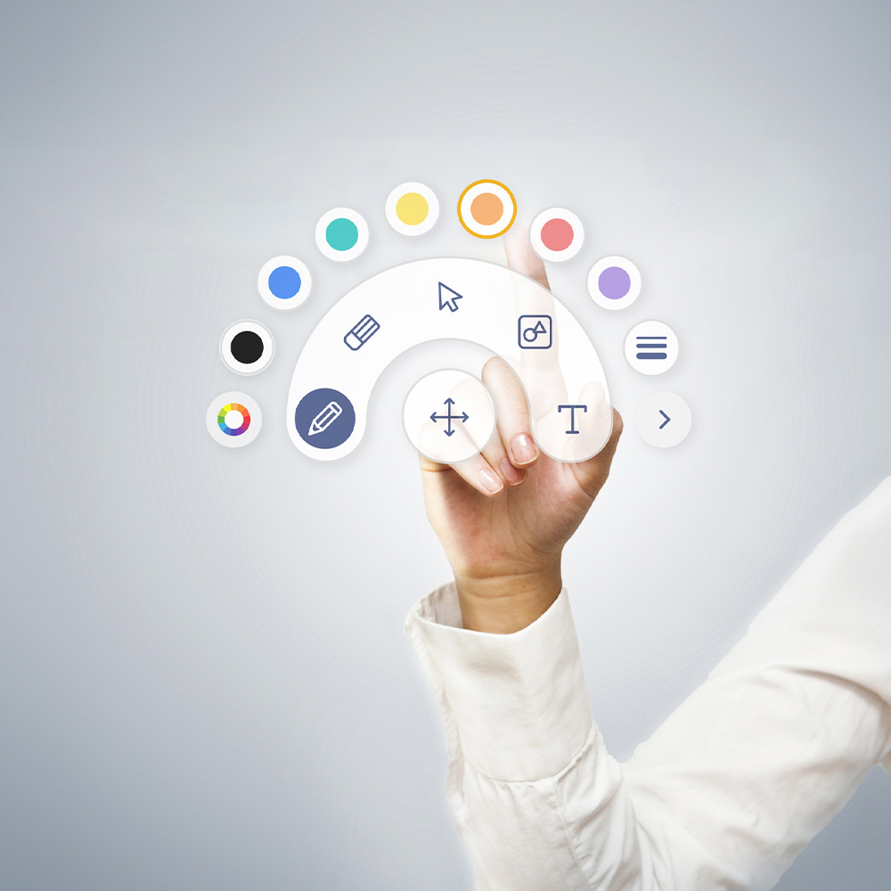 Easily move and position the toolbar anywhere on the infinity canvas. Instantly select tools, such as an eraser, ruler and highlighter, change colors or import images to enhance any lesson.