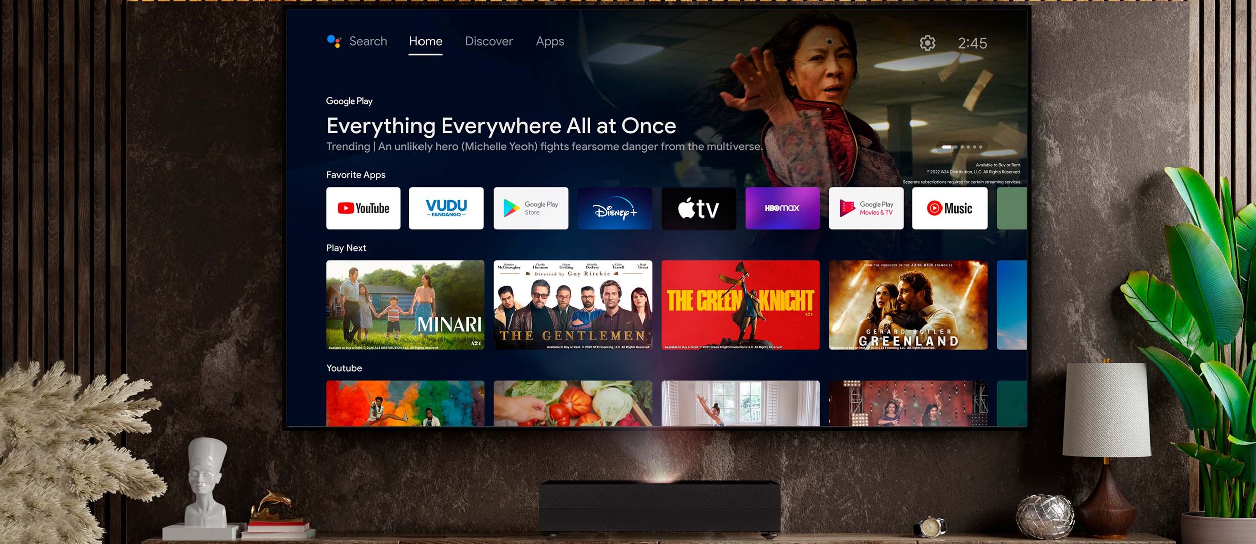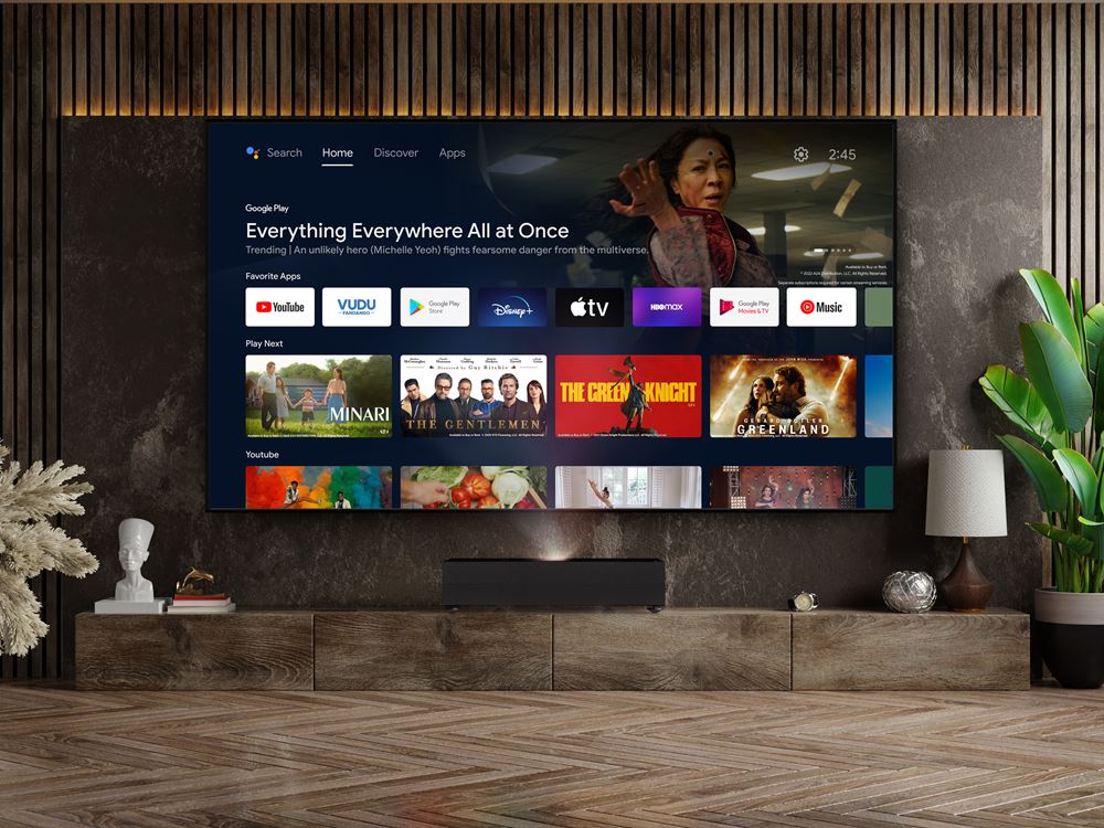 Simplify your entertainment experience with Android TV™ on the CinemaX D2 Smart ultra short throw projector. Enjoy access to 400,000+ movies, TV shows, live sports, and play music and games across streaming services and even customize your home screen to display your favorite apps. Queue the latest episode, pick up where you left off or jump to a new show on your go-to app in no time.