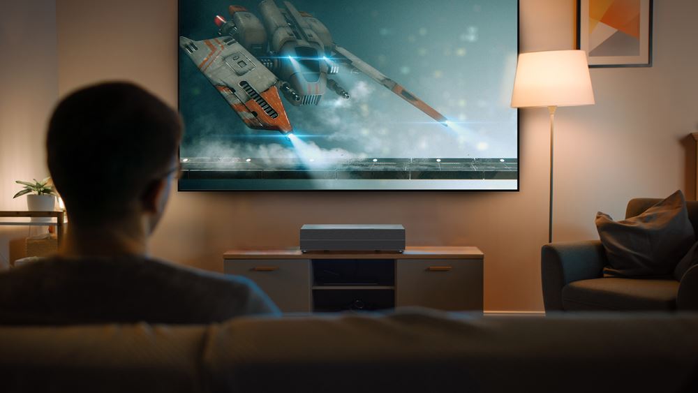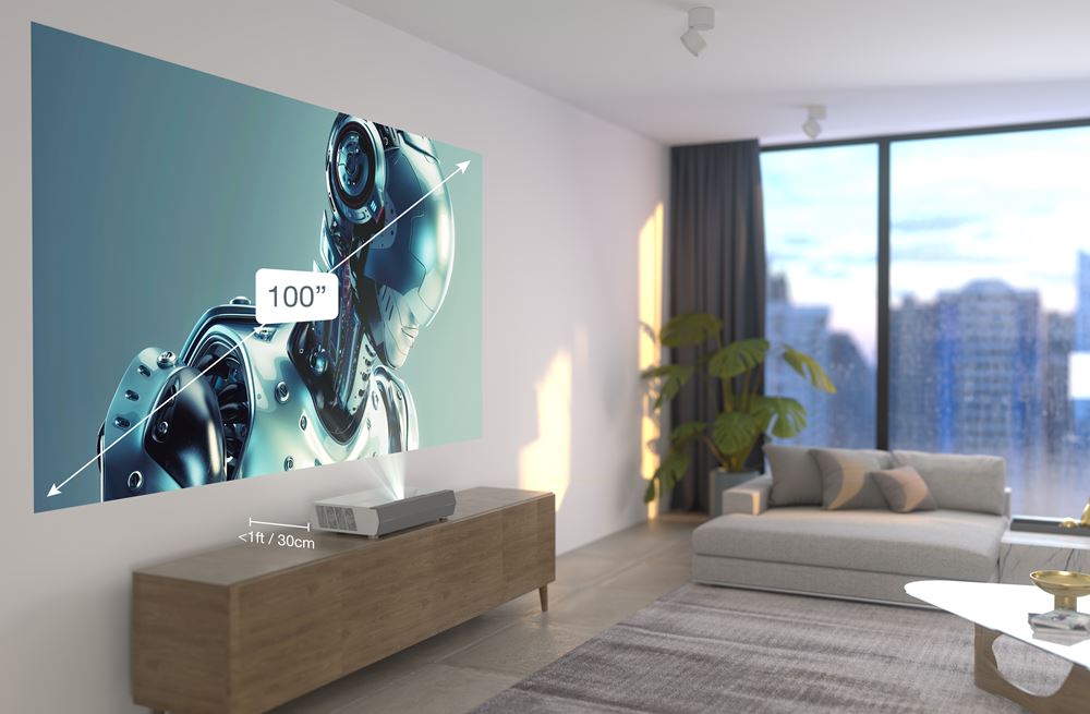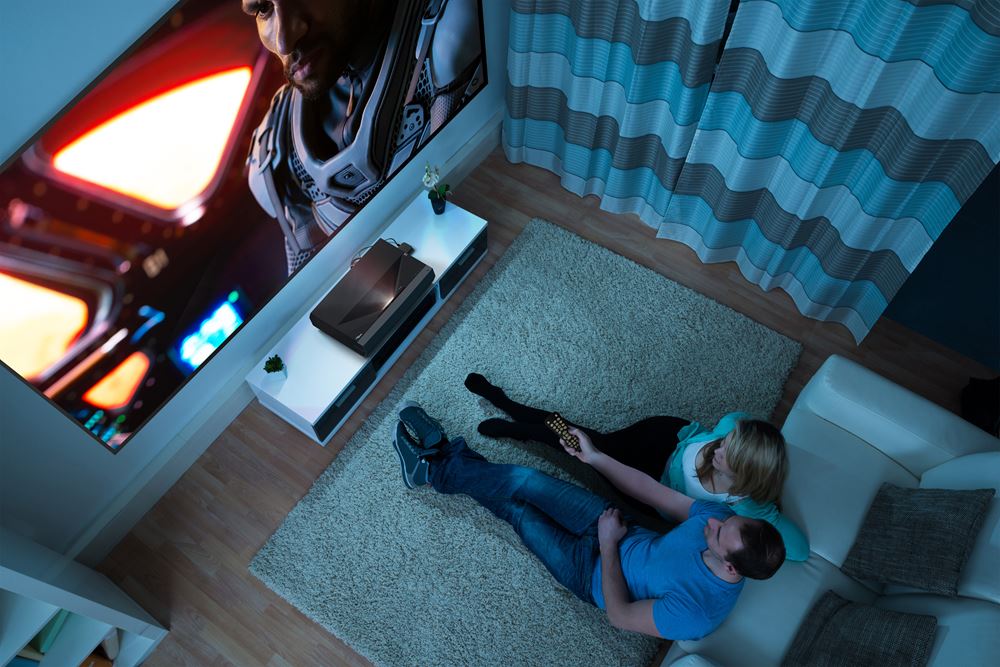 Experience a bigger screen size and enjoy the flexibility of home entertainment projection in the smallest of spaces. This ultra short throw projector can achieve a huge display – even when it’s placed close to your wall.
