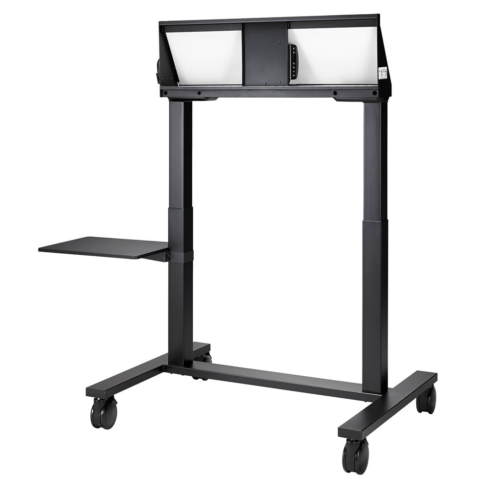 The EST09 motorized trolley is a sleek and stylish adaptable solution for 65” to 86” interactive displays and is designed for use in any education or corporate environment. Featuring height adjustment at the push of a button using the wired remote or via the interactive display,* the user has the ability to program two pre-set heights and quickly begin their lesson or presentation. With 19.6 inches of smooth motorized height adjustment of just under 1 inch/s, the EST09 is the ideal companion to your Optoma interactive display.