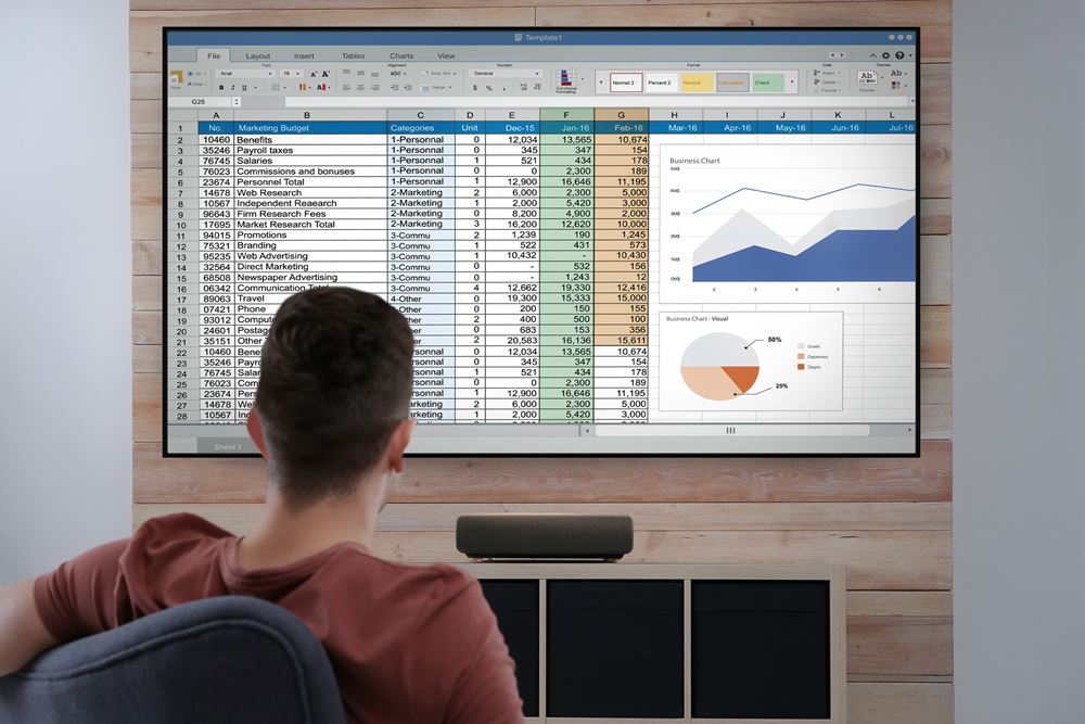 This all-round home entertainment projector combines high brightness and vivid colors for vibrant, true-to-life visuals in well-lit environments– ideal for watching TV shows, sports and movies or gaming with family or friends any time of day.