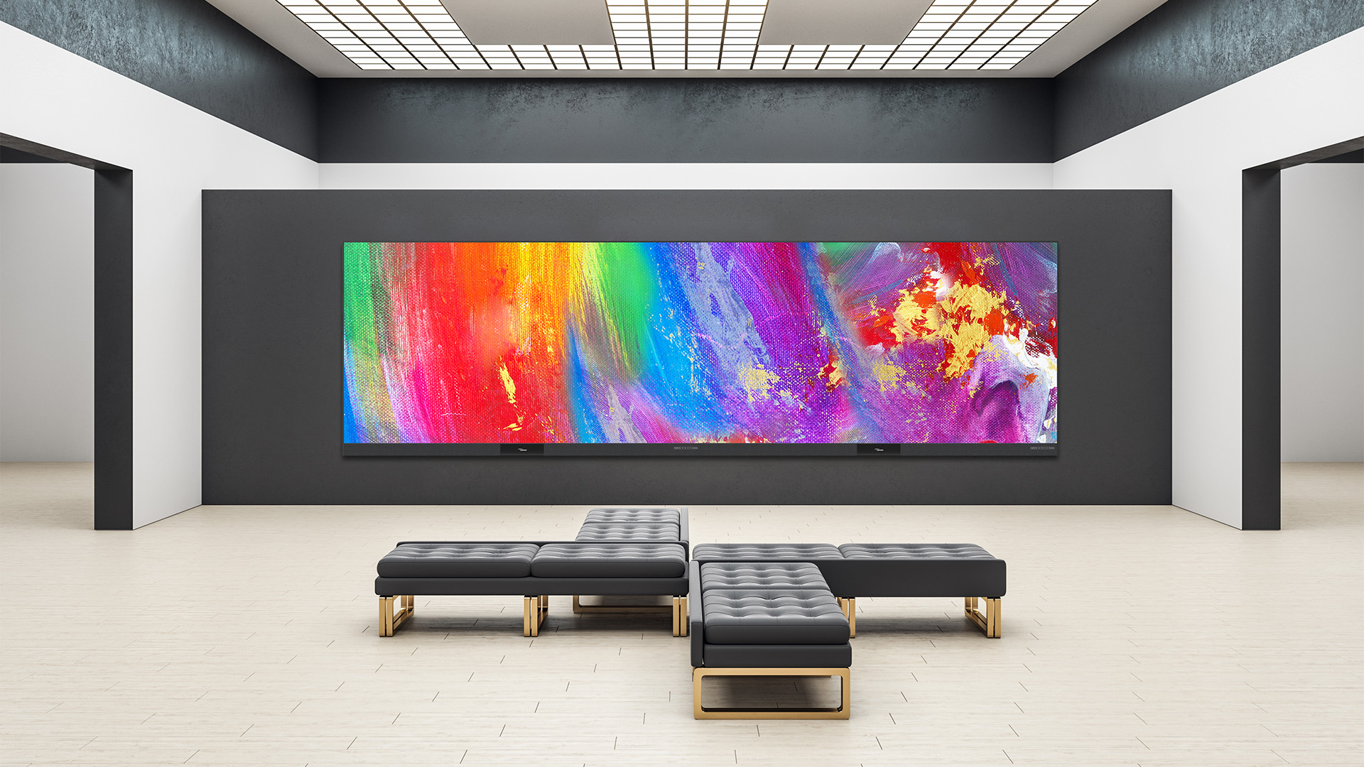 A streamlined, all-in-one 135" Full HD direct view LED display designed for fast setup, brilliant visuals, and long-term durability.