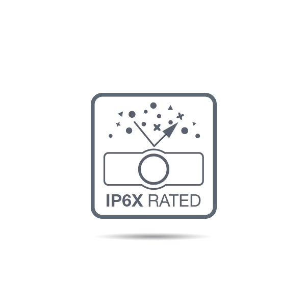 Independently tested and certified to IEC standard 60529 with an IP6X dust resistance rating. Outstanding dust resistance combined with exceptional brightness ensures industry leading durability; paramount for 24/7 maintenance free operation in challenging environments.