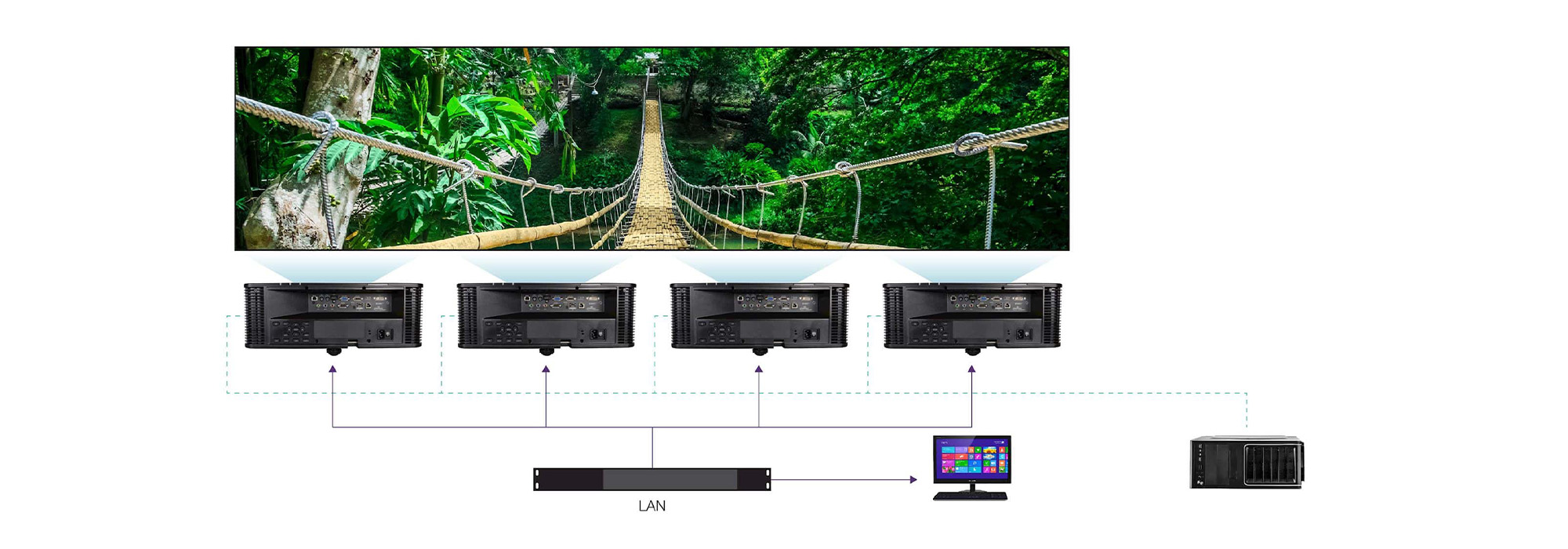 Integrated warping and edge blending processor enables multiple projectors to be warped and blended without additional dedicated hardware, reducing the cost & complexity of installation. Warping and edge blending is configured using either the projectors on screen display or with PC software depending on model.