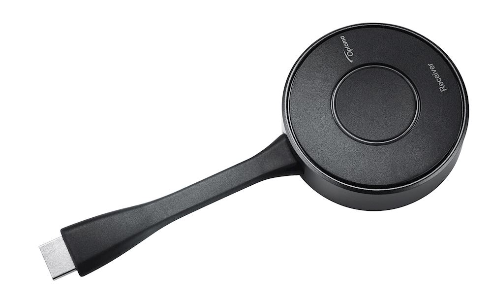 Easily share content from HDMI sources wirelessly via the Optoma QuickCast Pro. Simply connect the QuickCast Pro receiver to an HDMI input and plug the HDMI transmitter into the source and begin wirelessly transmitting office documents, presentations, videos and digital content with the click of a button.
