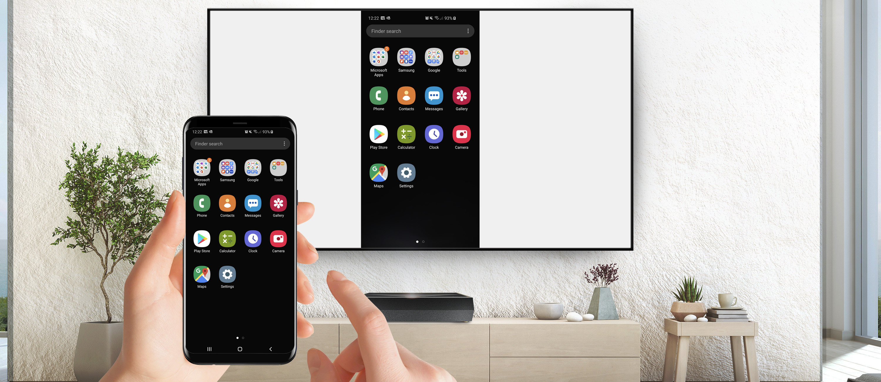Mirror exactly what's on your android, iOS, Windows, MacOS or ChromeOS device directly on the big screen. Perfect for sharing content stored on your device without the hassle and extra cost of installing long cables.