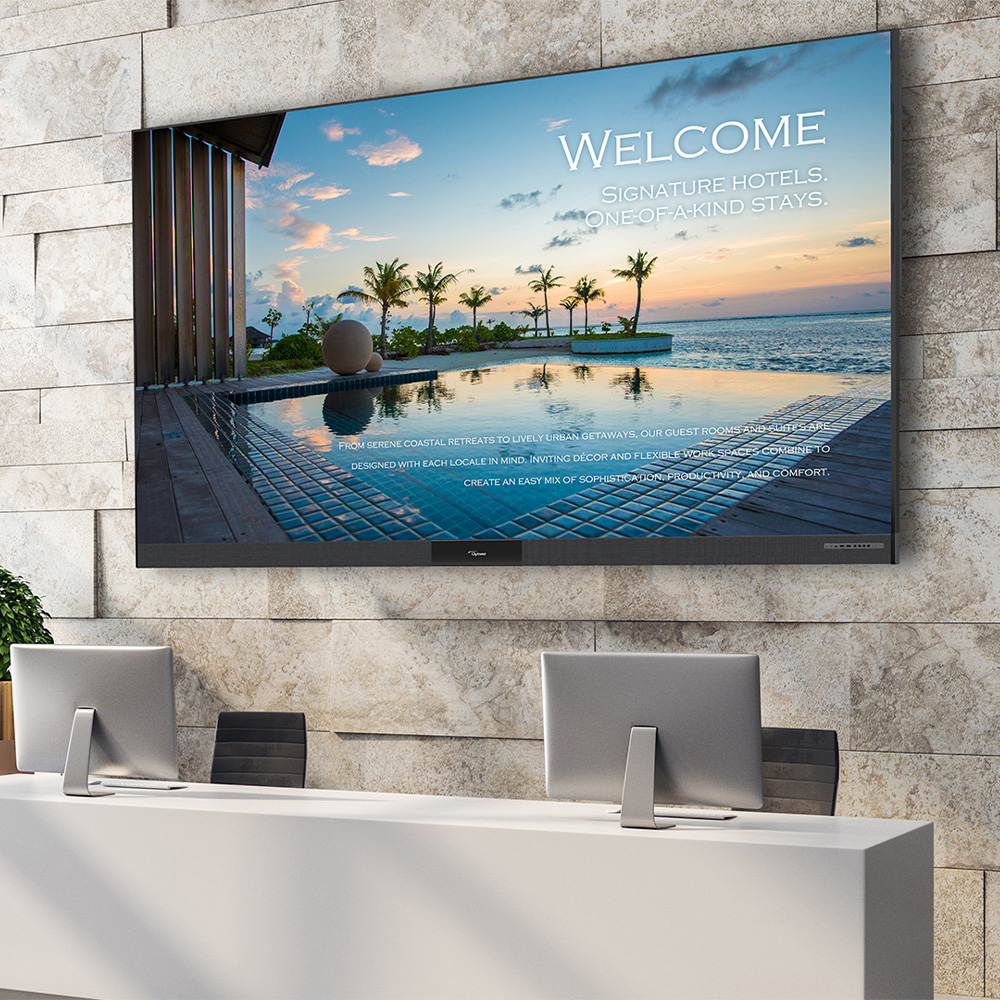 All of this so that corporate employees and clientele, K-12 and university students, and retail shoppers can enjoy large, high brightness, Full HD visual performance with all the convenience and ease of a traditional LCD display.