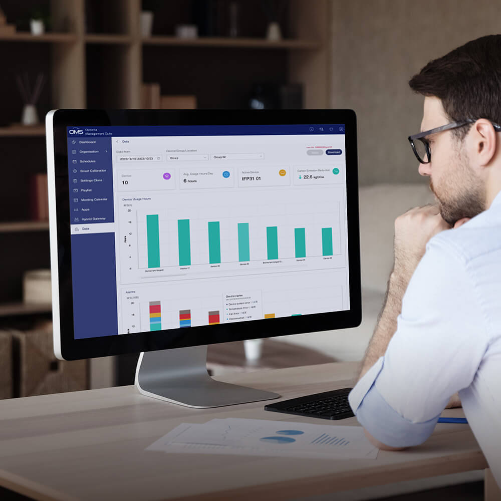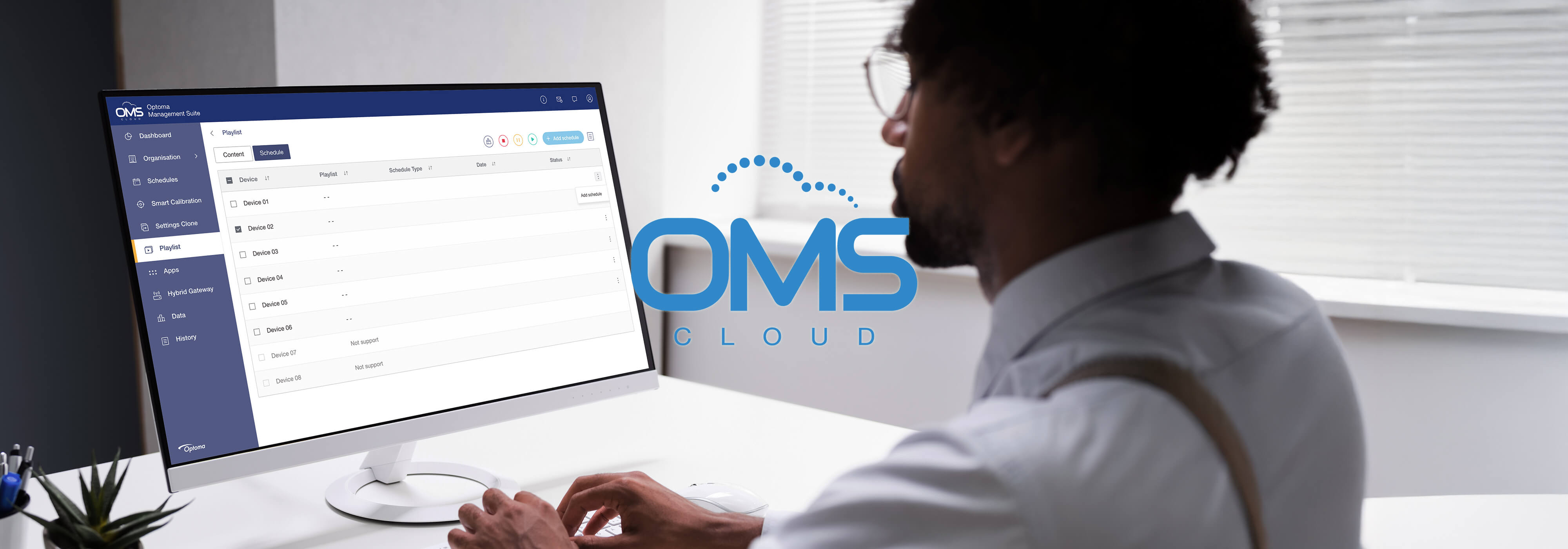 ProScene AIO dvLED displays include Optoma Management Suite (OMS®), an intuitive remote display management solution designed to streamline device operations with monitoring, issue diagnosis and control. Using the cloud-based application or a local area network, administrators can remotely broadcast content including alerts, schedule digital signage, power on/off and more.
