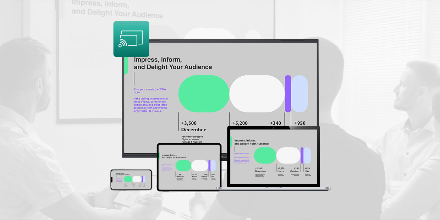 Display Share is a hassle-free wireless solution for video conferencing, collaboration, and presentations. Up to four users can share their screens simultaneously from Windows, macOS, Android, or iOS—ideal for hybrid work and seamless presentations.